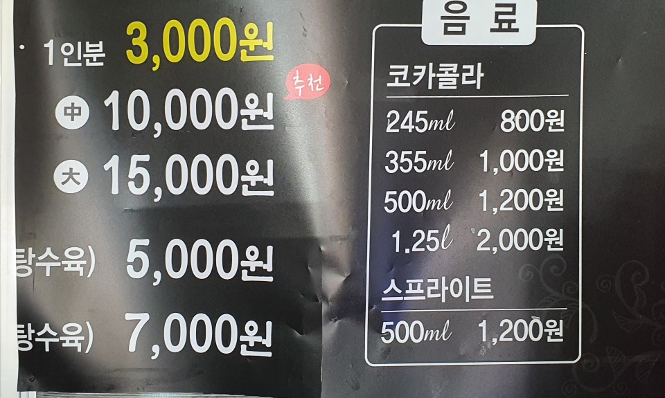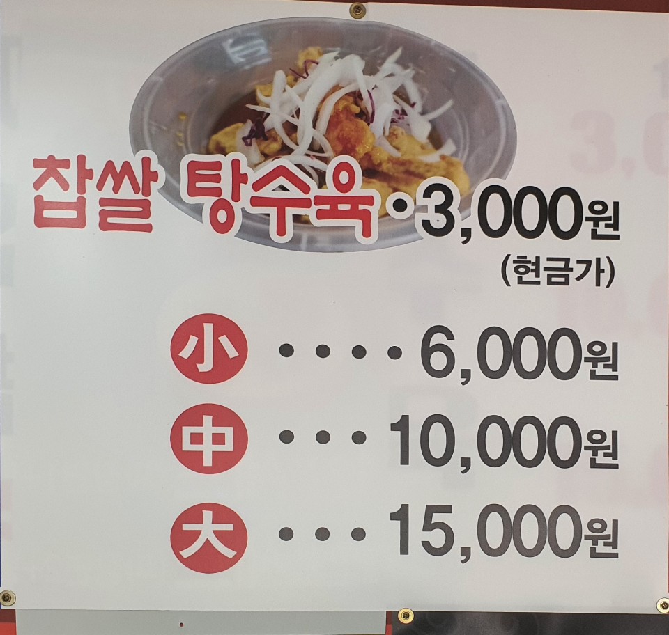 탕수육은 3000원부터 15000원까지 다양하게 식사를 하실 수 있어요. 많이 드시고 싶으신 분은 돈을 조금 더 추가하시면 많이 드실 수 있습니다.