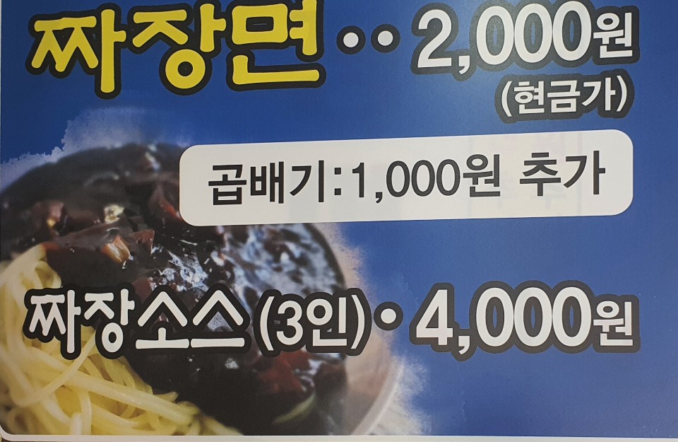 현금가로 2000원이고, 곱빼기로 추가하면 1000원이 더 추가 비용이 발생해요