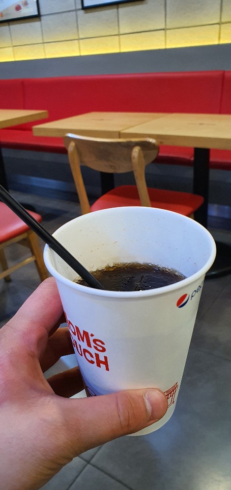 1인 1리필이 더 가능했던 터여서. 친구 리필을 써야한다고 그러더라구요. 그래서 친구 리필을 썼는데 받고나서 친구도 리필이 필요해져가지고, 허허... 콜라 리필받은거 나눠먹었어요 ㅎㅎㅎ
