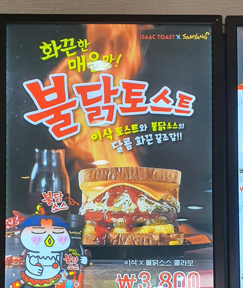 #Isaac 불닭 토스트예요 3800원 하네요 ㅎㅎ 엄청 맵게 보여요 맹물 맹물!!