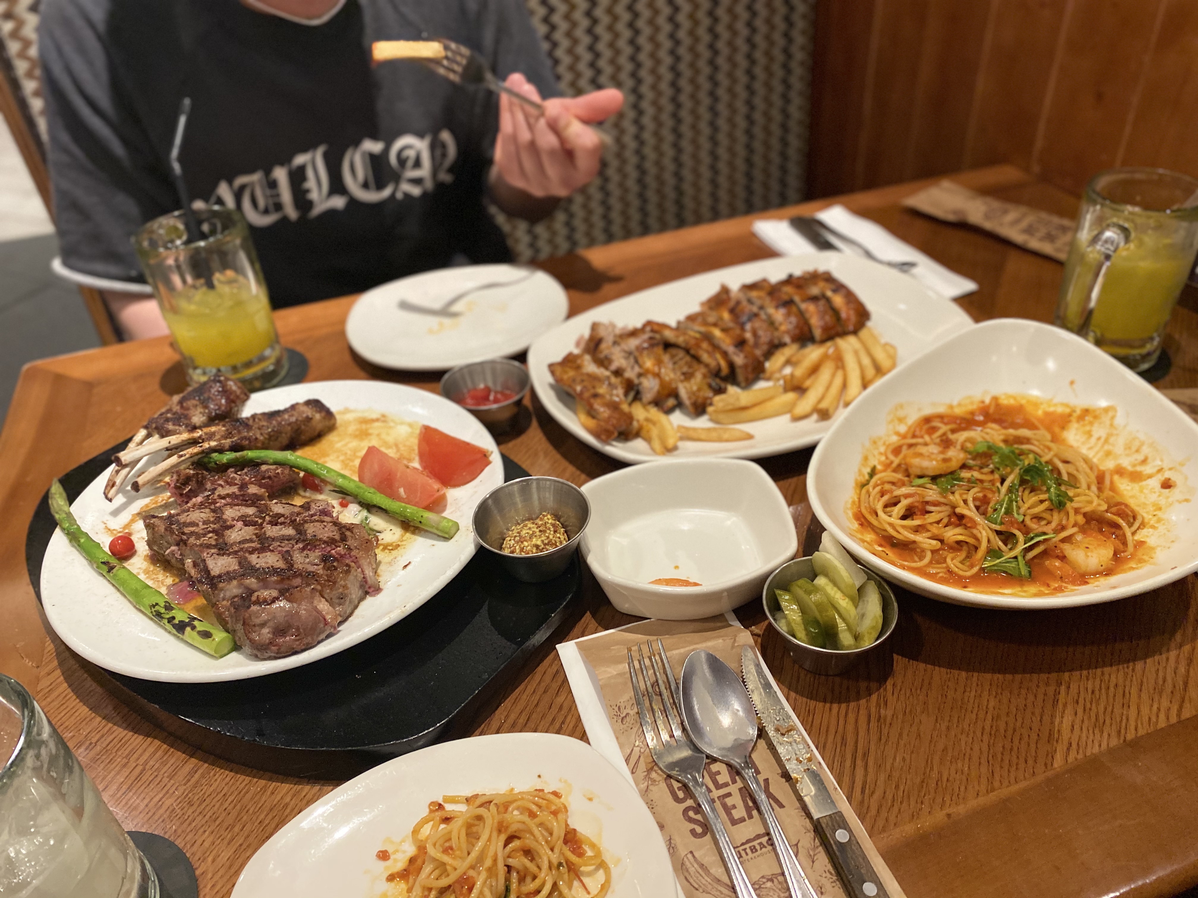 #스테이크 #칼질을 #잘 못해요 #엉엉 #아웃백에서 #가족끼리 #식사하면서 #품위 있게 #먹는 #방법을 배웠어요!! #happy happy