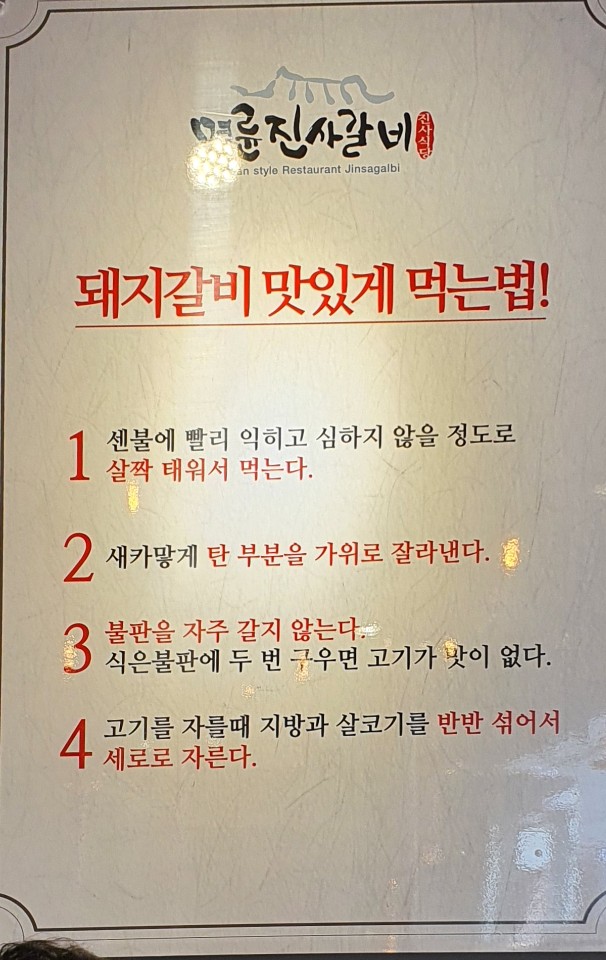 #명륜진사갈비 돼지갈비 맛있게 먹는법 테이블에 앉아서 먹으려고 하는데, 벽에 붙어있더라구요 ㅎㅎ