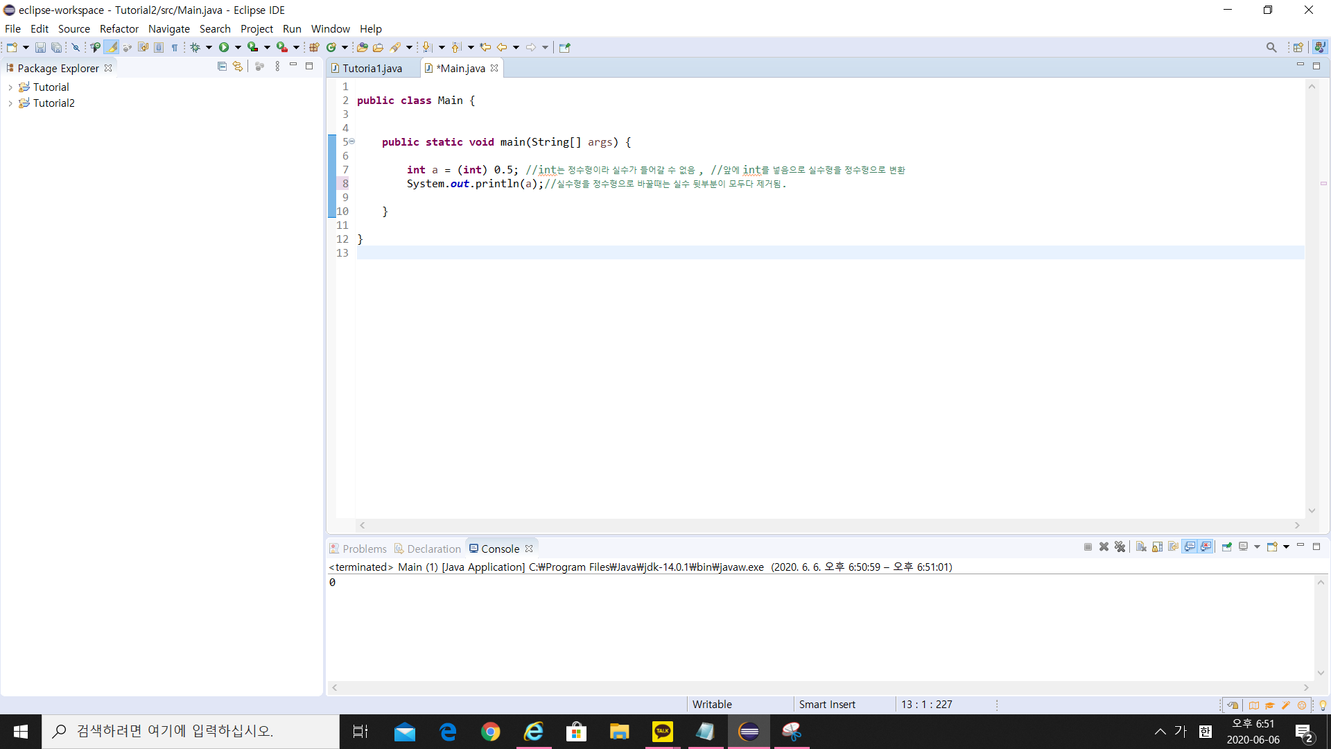 System.out.println(a)를 사용하여 출력을 하면, 정수 부분인 0만 출력됨을 확인할 수 있습니다.
