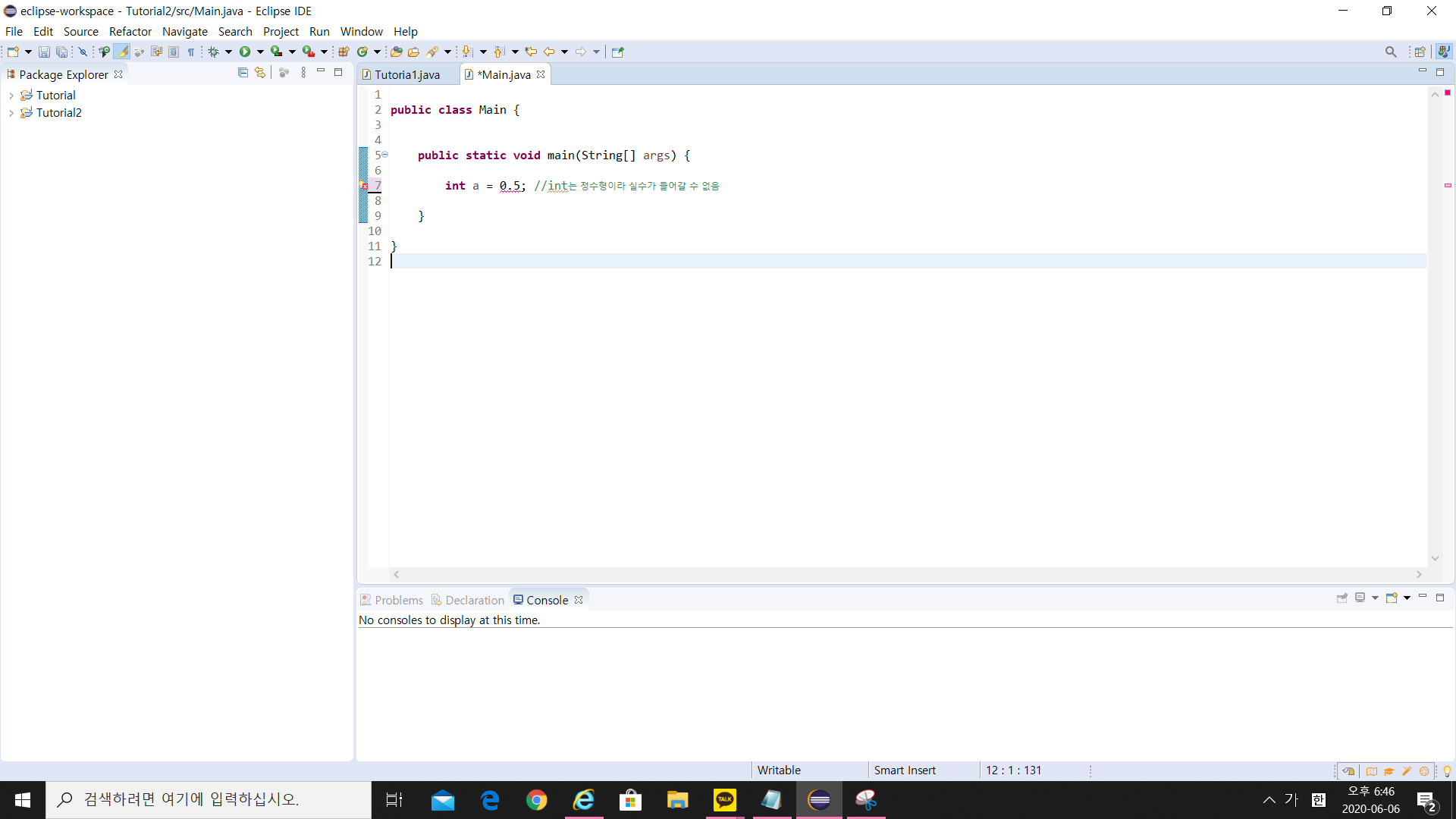 Eclipse로 자바 공부를 며칠 동안 못해서 다시 시작하려고 합니다