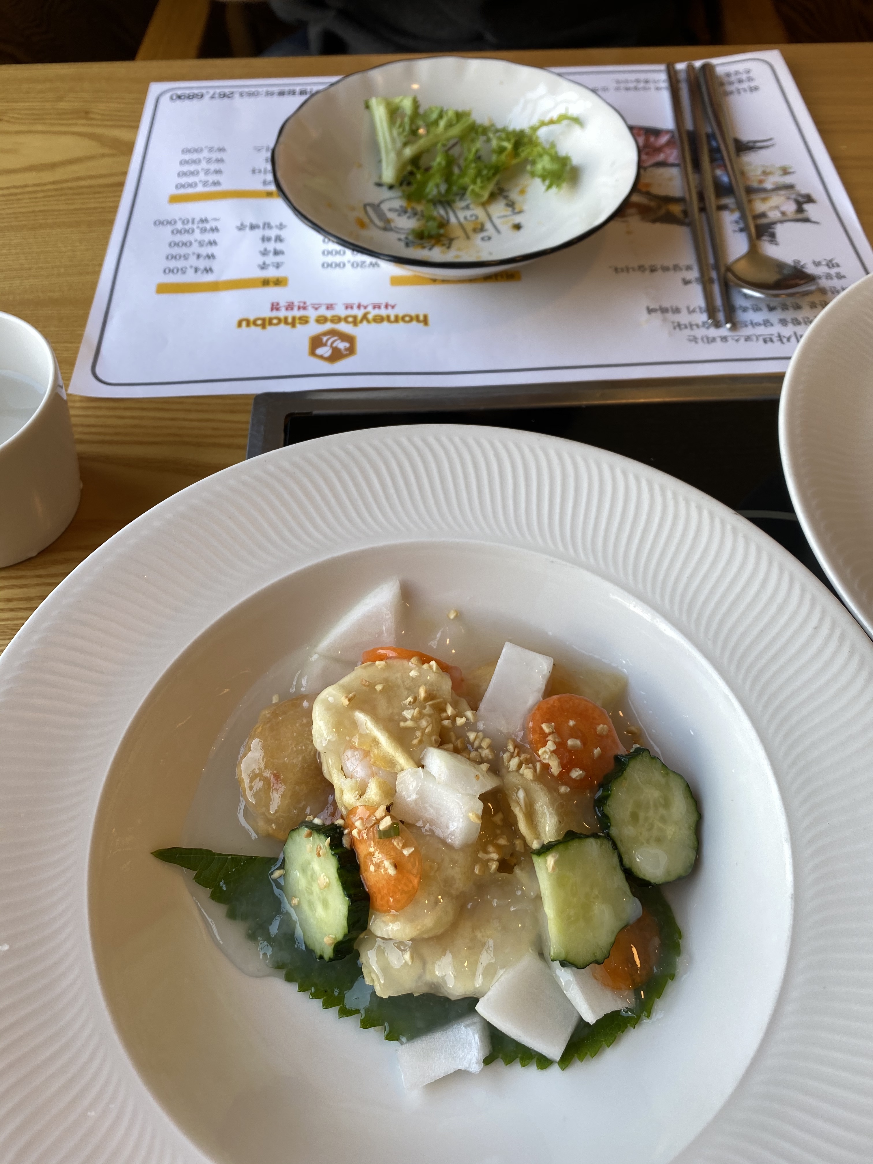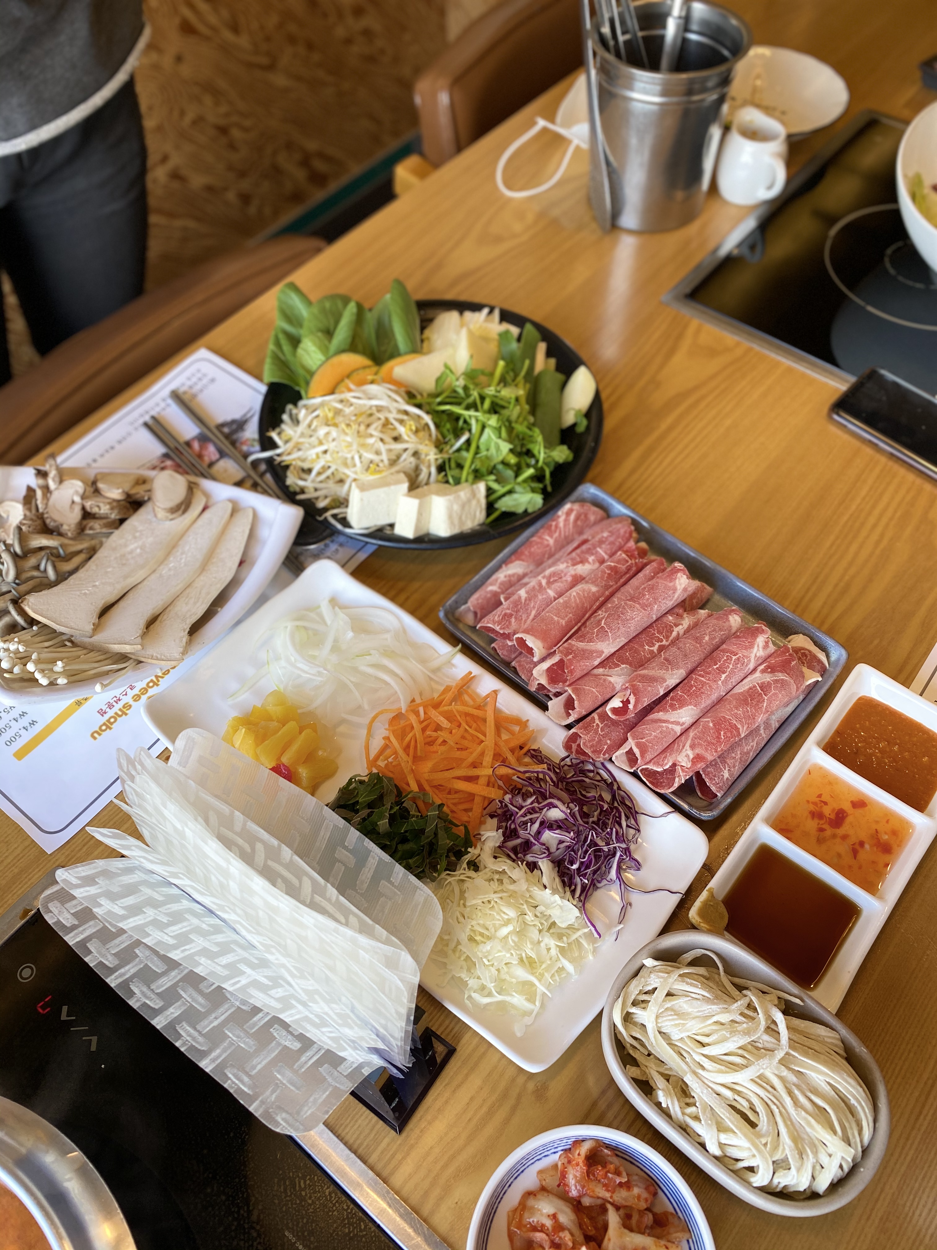 #확실히 #샤부샤부 #코스요리인만큼 #피자는 조금 늦게 나왔어요 #꿀은 한 그릇 가져다주네요!! #다 먹을 거야!!.