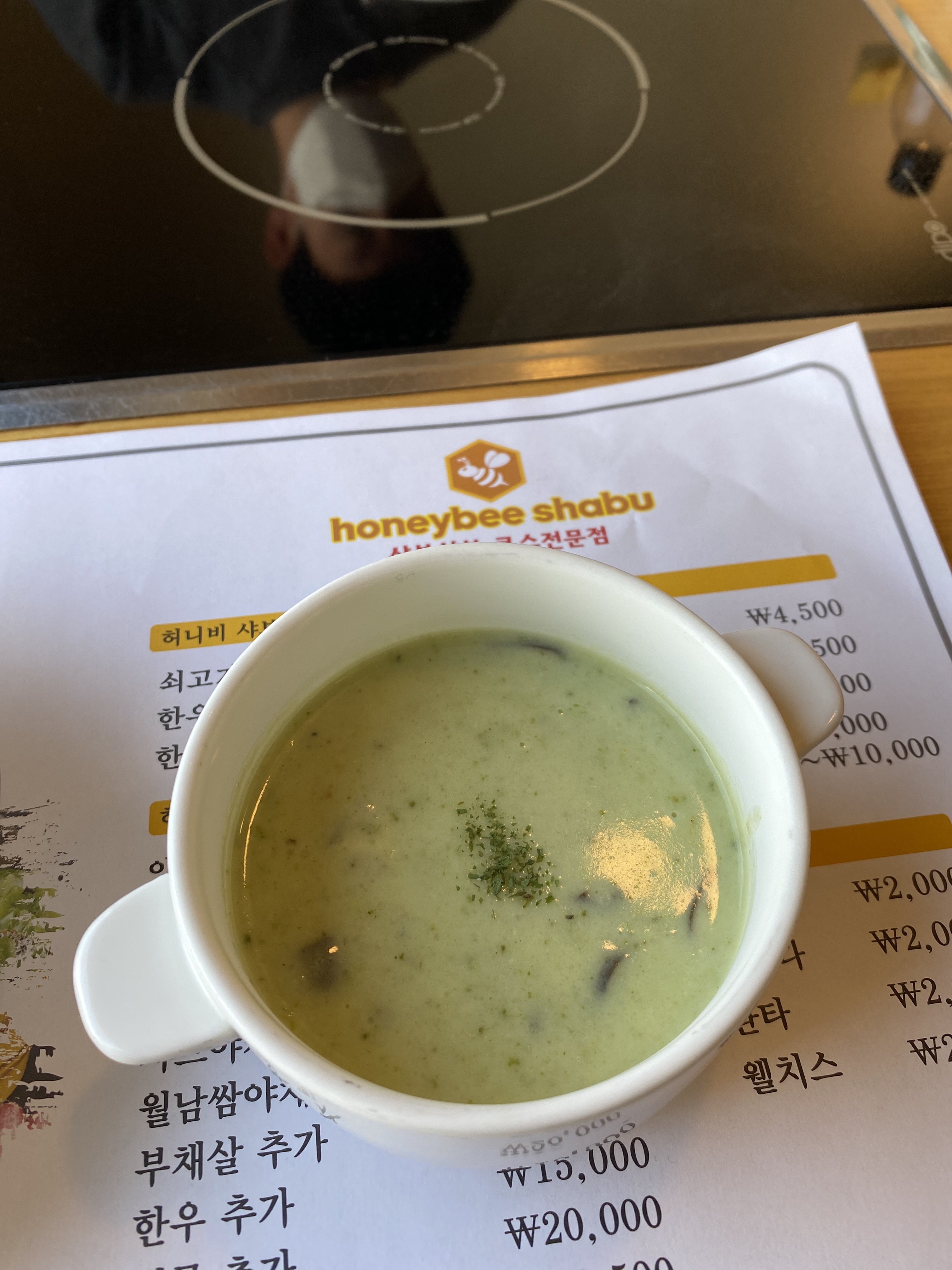 #코스요리 NO_1 #스프 #저는 수프 체질이 안 맞아서 한입 먹고 #누나 줬어요 #수프 좋아하시면 강추 강추 #한입의 후기는 #겨울에 몸이 녹는 기분, #여름에는 삼계탕 같은 기분