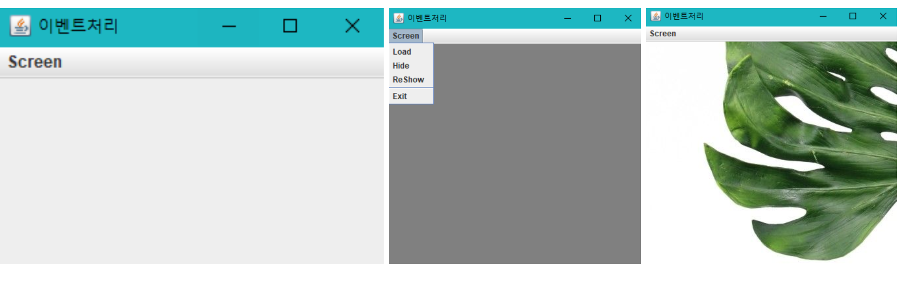 String[] menuStr= {"Load", "Hide", "ReShow", "Exit"};