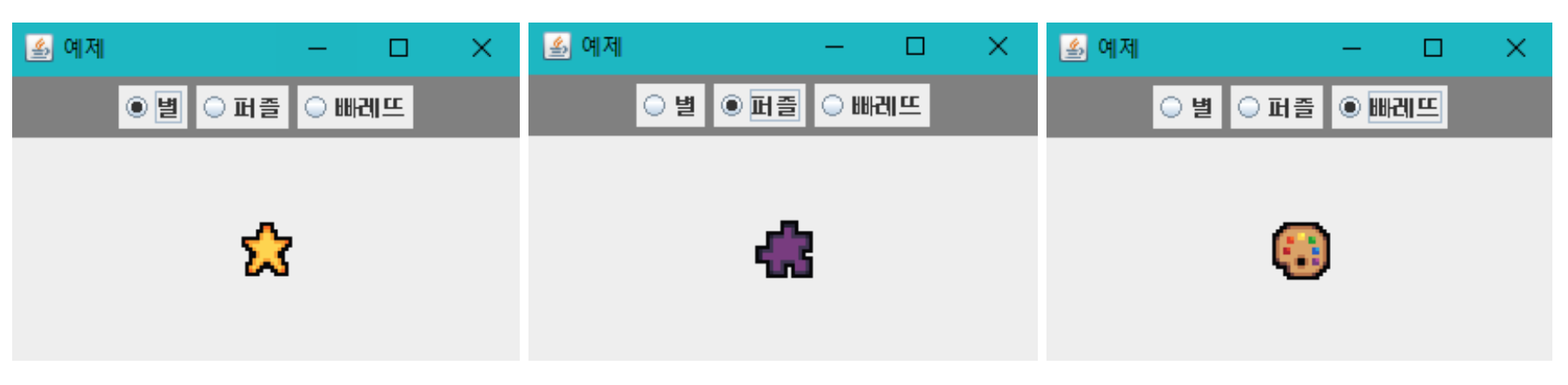 JRadioButton : 사용자가 여러 개의 선택지 중에 1개의 선택지만 선택할 수 있는 버튼