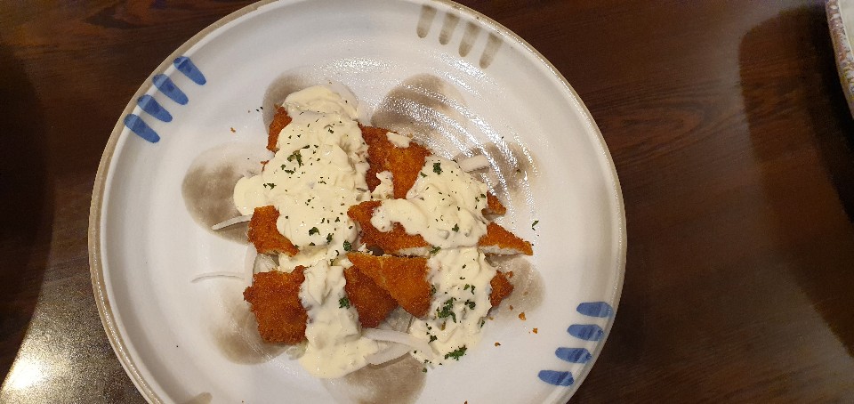 서비스 메뉴로 치킨가스 받았어요 전 소스가 맛이 없더라고요 ㅎㅎ 그래도 소스 걷어내고 다 먹었어요 ㅎㅎ 제가 마지막 한 조각까지 싹 쓸어 버리더라고요 핳핳