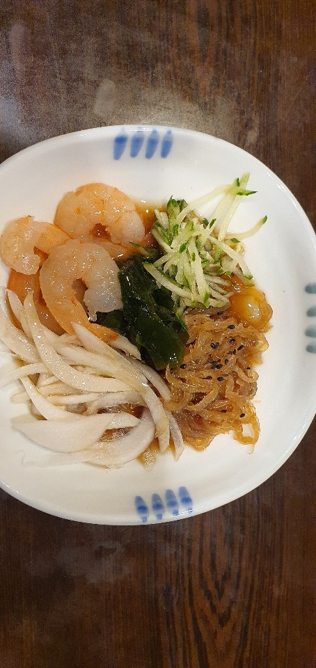 밑에 소스가 같이 버물려서 새우, 오이, 양파 다 맛있었어요 ㅎㅎ 하나는 처음 보는 거라 먹어봤는데 엄청 맛있었어요 ㅎㅎ