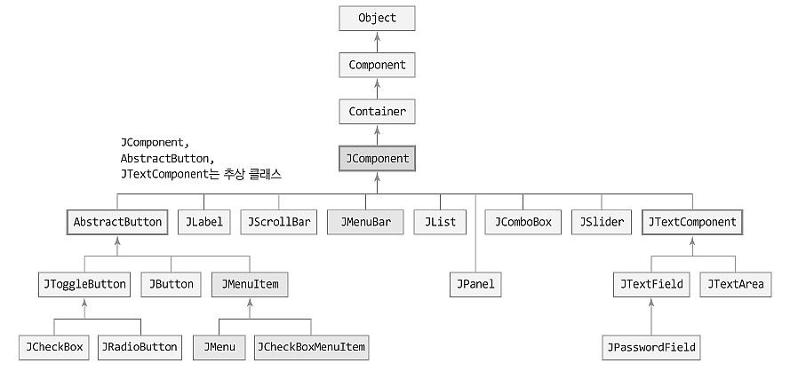 <<스윙 컴포넌트와 상속 관계>>